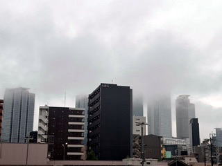 名古屋→那古野(なごの) 那古→霧深い 那古野→霧深い野原 那古は万葉集にも多く歌われる言葉の一つで、 平安の古来から現代に至るまで 名古屋駅周辺は、ご覧のように雨が降る日は 高層ビルが霧に覆われる、そんな地形になっているといえよう。
