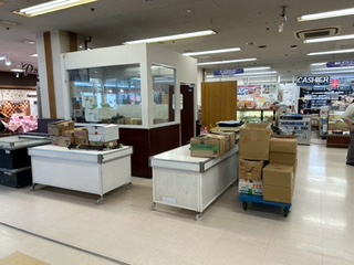 9月に入り、店内は秋の装飾が目立つようになった。 巨峰、梨、青切りみかんなどフルーツも季節感を感じさせる陳列になっている。