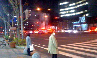 付近のうなぎやから出火し