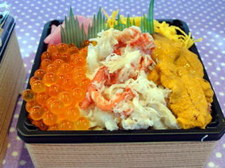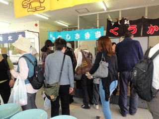 一年でもっとも入園客数の多い時期となる(約10万人) こちらは『藤澤政広』さんの海鮮弁当。 生の本ずわいがにを使用したお弁当が大人気。 こちらは『川上食品』さんのコロッケ、 かにかまぼこざんぎ。 公園には、 こうした立派なカメラ持参で 来園される方が多い。
