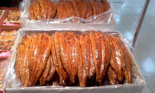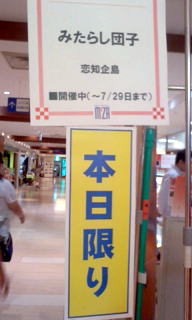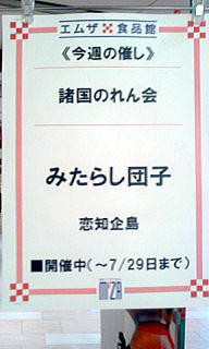 7/29 近江町市場の鮮魚売り場、 エムザの焼き魚売り場、 はたまた催事場では この日うなぎ・うなぎ・うなぎでありました。 一方こちらは8ヶ月ぶりのお団子展開。