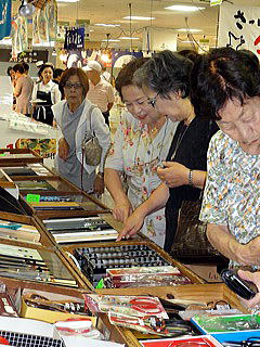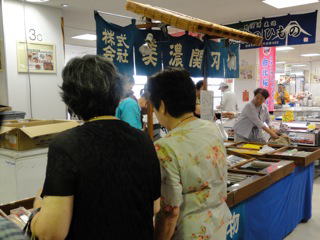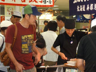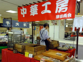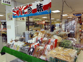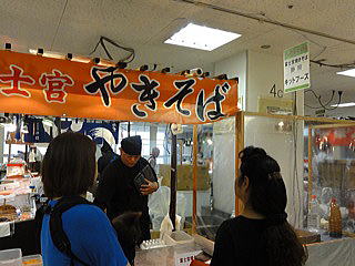 『あずみ屋』の附田さんが担当した。JAの平田さんが販売するコーナーには、珍しいラーメンがいろいろ揃えられた。