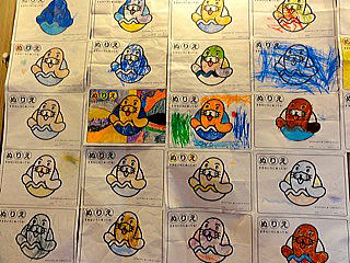 親子連れで来る 子供向けに塗り絵が配られ、 上手な人が張り出されていた。 中にはちょっとまね出来ないくらい 上手な絵が2〜3点見受けられた。 今回は、ほとんど生菓子中心で展開した。 初物のせいか、『さくら餅』が人気を呼んだ。 同時開催で『工藤食品』さんが並んだ。