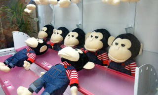 おおきなお人形をつかまえて遊ぶゲーム機の今週の相手は チンパンジーの『パン君』でした。