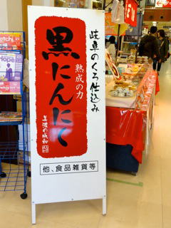 恩返し』する男性客が大口で購入する姿がほほえましかった。『黒にんにく』の大きな看板が届いた。