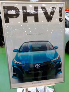 昨年のトヨタの水素車ミライにかわり、 今年は、最新型PHVプリウスが並んだ。