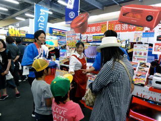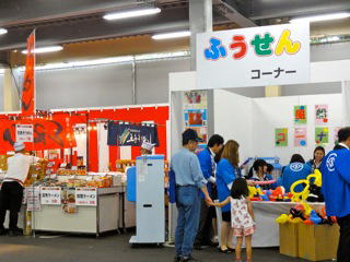 引っ越ししてきた『風船こーなー』。『ジンギスカン食べ放題』は今年から初オープンした、長島温泉直営のイベントだ。
