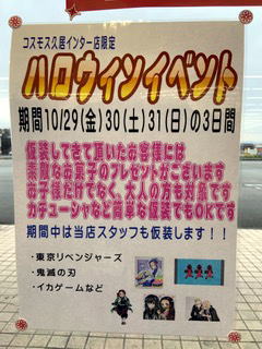 仮装してきた時に、担当者からお菓子のプレゼントがある(10/29〜31限定)。