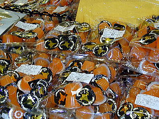 こちら『味商』さんの取り扱う、 『山下水産』は遠慮深く、小さめの文字がかえって目立つ。佃善の『じゃが豚』は、