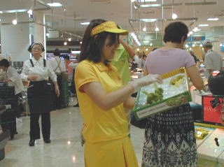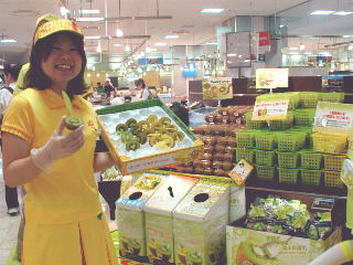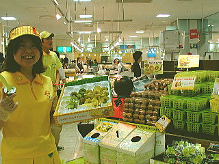 五平餅が人気でした。 こちらはお隣の九州の博多の明太子屋さん 当社は草餅をどかんと特売しました。 今週はゴールデンキーウイの試食セールでした。