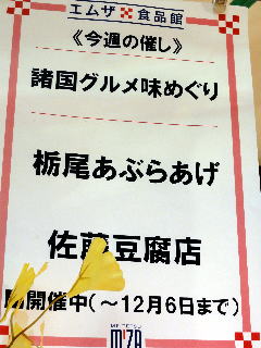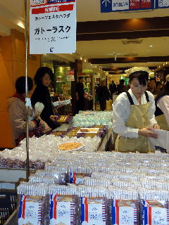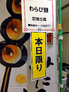 翌週の催事予定は「新潟」の名物であった。 栃尾揚げ、と、新潟笹団子の業者が入るはずだった所、 笹団子の業者が肺炎で入院したため、 急遽、当社に延長の申し入れがあった。 やむを得ず、承諾した。 とはいえ、月末なので、支払い業務のため2日間は名古屋に戻り仕事した。 |