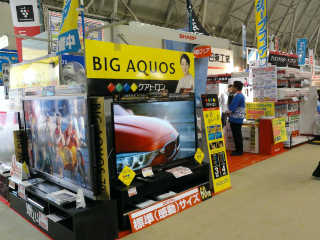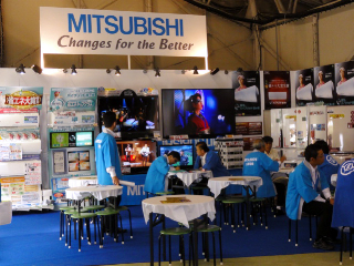 大きな液晶ブラウン管でショウアップする三菱とシャープの両者。