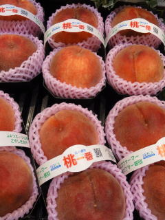 こちらは5尺3本プラス作業台をL字側で1本の展開で,超らくらくです。 お盆開けの週でしたので、こうした商品群が目立ちました。 「ほうずき」は1束480円の半額になっていました。 ももがおいしそう。1パックで2個入り、 680円くらいしてます。
