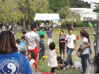 芸を指導するコーチさんもいて、秋の青空の下、家族で雰囲気を楽しむ姿が見られた。