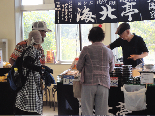カネシマ園がプリン 北友物産が乾燥珍味、貝柱、昆布など 会場の付近には