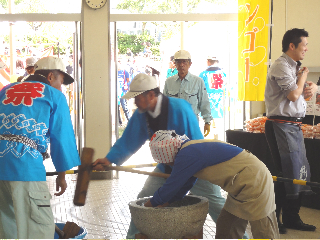 大勢の入場者に無料で『きな粉餅』『あんころ餅』が振る舞われる一幕もあった。
