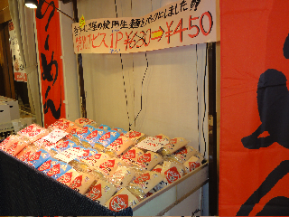 写真はでかいチャーシュー2枚入りのみそラーメン。(▲先頭に戻る) 札幌 左近の生ラーメン即売 (▲先頭に戻る) フレンドリーパートナーズ(東京:古里の漬物) (▲先頭に戻る) 森 まるも食品(いかめし) (▲先頭に戻る) 静岡由比 耕作 (▲先頭に戻る) 大阪 里元商店