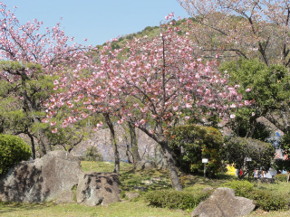 この公園では3月にしだれ梅が、4月初めにソメイヨシノが、