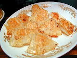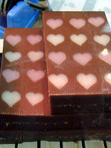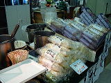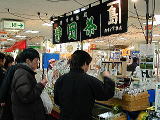 「虎屋ういろ」は三重県からの出展。当日入荷したばかりのういろを凧糸のようなもので切り分けて販売する。出来立てなのでとてもソフトな口当たり。この日の特製品は何と言っても、バレンタインういろ。ハートの形が憎いね。