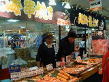 新鮮な北海珍味や魚卵、明太子といった食材を売り場いっぱいに陳列、即売する。
