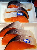 店主の小野さんは鮭切り40年以上の超ベテラン。
