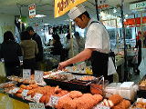 とてもおおきな穴子すし、さば棒すしを実演販売。一口ではとても食べきれないサイズが自慢。