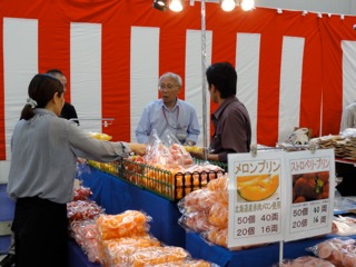 今年は『北郷』さんが出店されず 代わりに『カネシマ園』さんの「プリン」。 『丸秀商店』さんの「千葉産落花生」。 『海花』さんの「海藻・昆布」。 『北友物産』さんの「北海乾燥珍味・さきいか」、などが登場した。 他に、当社と問孫さん、直営の1両菓子で構成された。