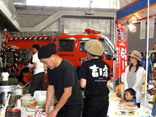 金沢子供フェスタ 働く車に触る体験学習 参加した食品業者は 名鉄エムザから10ブース(12業者) ラーメン2業者 カレーライス お好み焼き、広島焼、 鯛焼、 みたらし団子、五平餅、わらび餅 チャイニーズバーガー 明石焼、 串焼き、とうもろこし、 ジュース かき氷