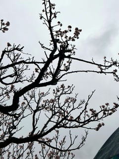 開店前からこの空間を利用する顧客もあった。この時期、紅梅が盛んに咲き始めた。